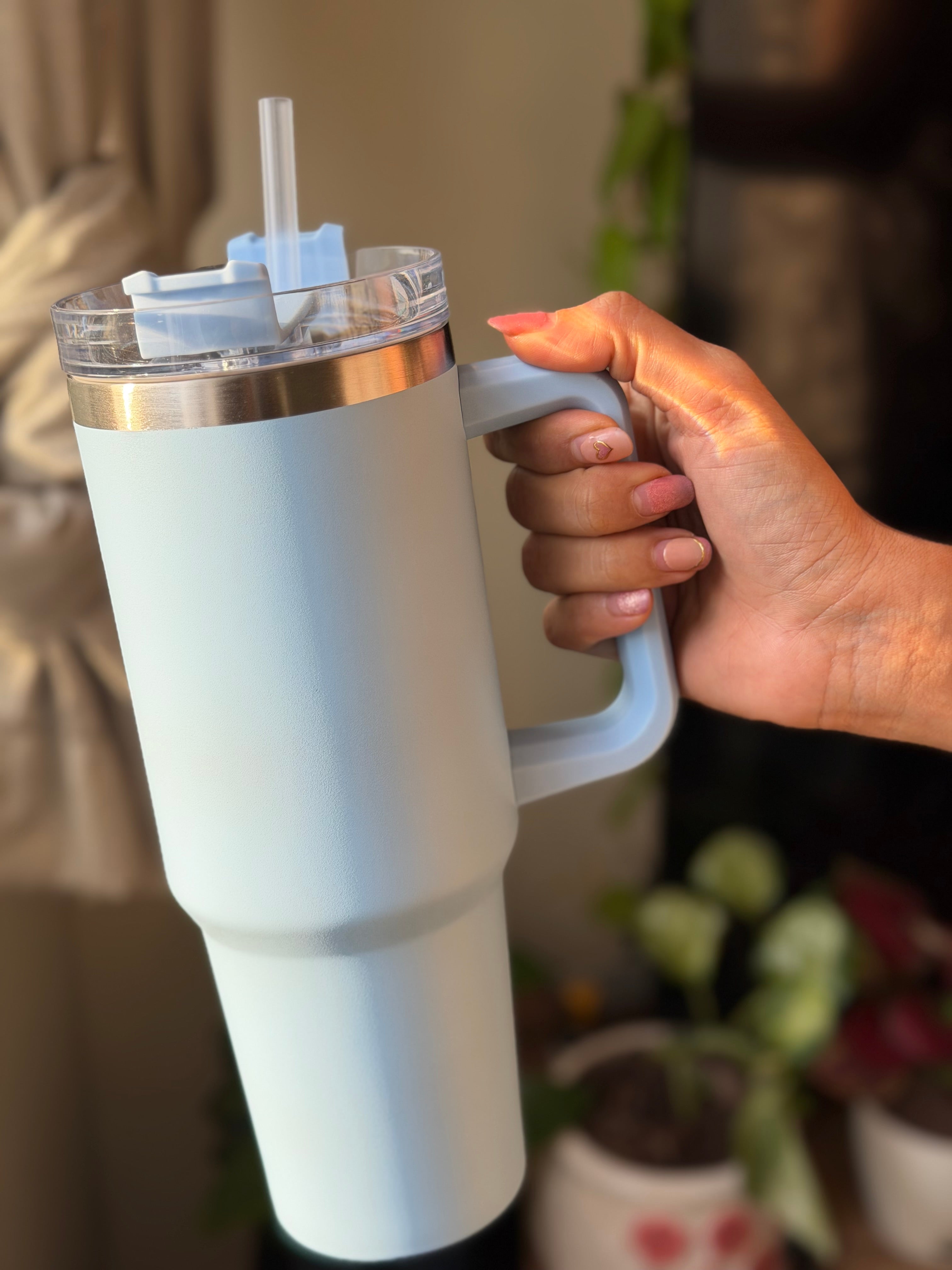 Steel / Sturdy / Stanly / cute blue colour/ with straw / holds hot and cold water